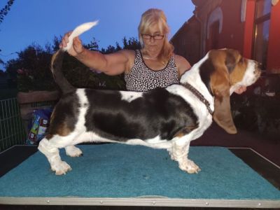 Unsere Bassbarr Deborah Kerr warf am 07.11.2024 - 4/1 Welpen nach dem Rüden Ceezer Long Darling. Unsere Debbie ist eine Hündin aus England. Alle Welpen haben super Personal gefunden!